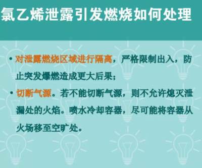 如果氯乙烯泄露引发了燃烧,要立即对该区域进行隔离、切断气源。