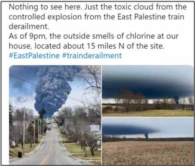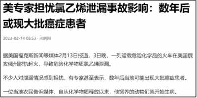 然后一直到2月12日,眼看着这件事掩盖不住了,美国主流媒体才姗姗来迟的开始详细报道起这件事情,提到了有氯乙烯起火。
