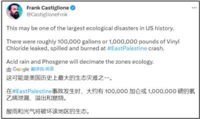 这件事情虽然在发生的头10天,被美国强压热度,几乎没有美国媒体报道,零星几个报道,基本也是避重就轻的说了下出现货车事故,而不提有化学品起火泄漏。