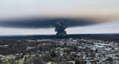 2月3日,一列运载氯乙烯的列车,在美国俄亥俄州东部脱轨,引发大火。