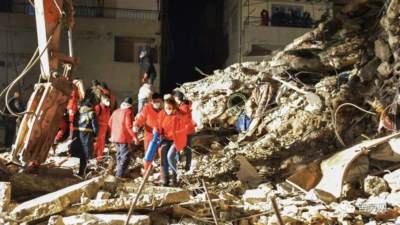 叙利亚红新月会正在进行搜救工作。(图片来源:Peoples Dispatch)
