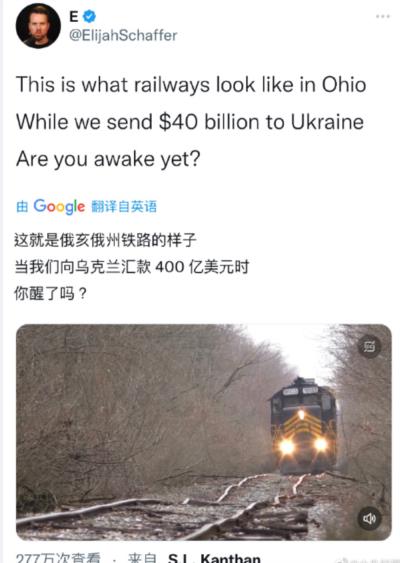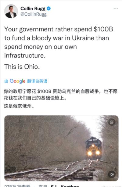 还有美国人怒斥说:这就是俄亥俄州铁路的样子,当我们向乌克兰汇款400亿美元时,你醒了吗?