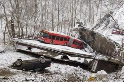 美国现任总统拜登至少嘴上也很重视基建,可是同样搞不成。其中2022年元月时,就在拜登去匹兹堡推销他的基建计划时,必经之路上的一座桥突然坍塌了。