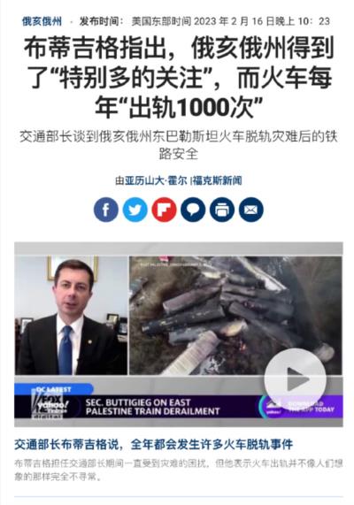 美国政府交通部长甚至不惜说实话,声称美国每年火车出轨一千多次,只是俄亥俄州得到了“特别多的关注”。