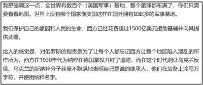 虽然这段话内容,肯定是有一些争议,因为虽然确实是美国拱火,挑起战争,但真正实质性决定动手的,还是俄罗斯。