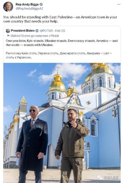 一边是俄亥俄州居民饱受荼毒,一边是乌克兰民众喜获大礼包。这下,包括共和党阵营内的多个官员,以及美国民众的怒火彻底被点燃,争相发声批评拜登突访乌克兰,指责他更关注乌克兰而不是东巴勒斯坦。