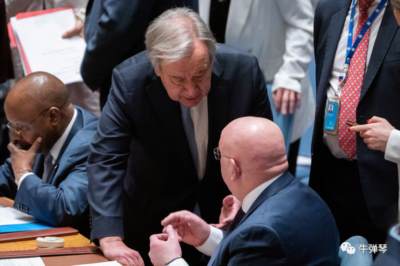 看视频,包括联合国秘书长古特雷斯、美国国务卿布林肯在内的西方国家代表,都很犹豫,一些人是“站也不是坐也不是”,一些人先站起来了但又犹豫着要不要坐下。