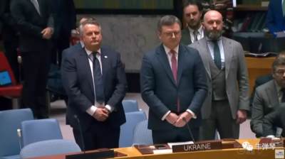 一个很有意思的细节,乌克兰外长库列巴发言,请求全体参会人员起立,为“俄罗斯入侵”的乌克兰死难者,默哀一分钟。