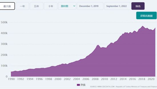 截至目前,土耳其外债规模高达4450多亿美元,是外汇储备的四倍多。