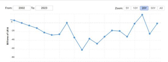 2022年由于疫情和中美贸易战影响,土耳其趁机抢订单,出口额达到2542亿美元,比2021年增长12.9%,创历史最高纪录。谁知道,由于战争刺激能源价格与供应链动荡,2022年土耳其进口飙得更猛,逆差直接翻了一倍多,飙到1090亿美元。