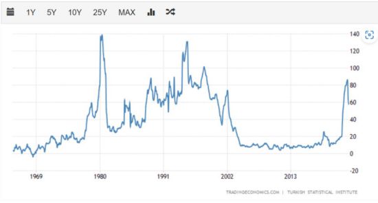当时土耳其的民众们就纷纷把里拉换成美元或黄金来避险。这同时,土耳其的通胀也在加速,11月份通胀水平甚至超过了20%。