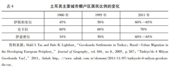 早在1960年,伊斯坦布尔、安卡拉、伊兹密尔三大都市的棚户区居民比例就已经高达45%、60%和34%,到了2000年,土耳其约有1000万栋(约占全国总建成房屋的62%)房屋都是违章建筑。