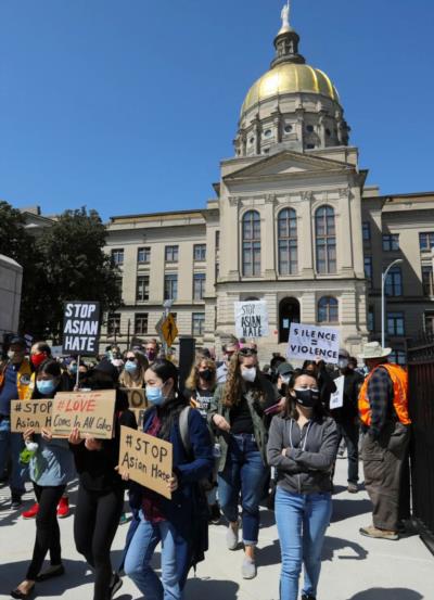 2021年3月,一名枪手袭击佐治亚州亚特兰大市由亚裔经营的两家水疗中心和一家按摩店,造成8人遇害,其中包括6名亚裔女性。有南亚裔血统的美国副总统哈里斯当时承认,种族主义和仇外情绪在美国一直是“真实存在”的,美国一些身居高位的人把亚裔当作替罪羊,那些人有话语权、影响力,却在散播仇恨。