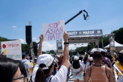 2022年6月25日,美国亚裔人士在首都华盛顿的国家广场举行集会,呼吁停止针对亚裔的仇恨及暴力犯罪行为。新华社记者刘杰摄
