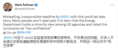 新闻网站MotherJones的编辑马克·弗曼指出,“《华尔街日报》的标题有误导、不负责。许多人根本不会详读内容以了解其实能源部的看法在美国所有机构中是少数,并且认为对这个结论‘信心不足’。”
