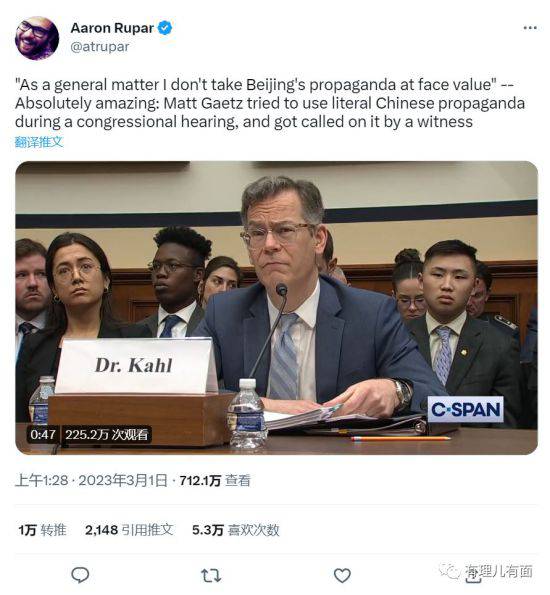 再来看看听证会事件中美国政客马特˙盖茨和卡尔的反应,似乎更值得玩味。