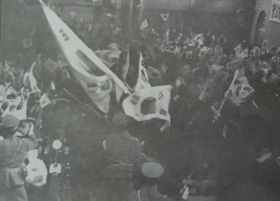 幸好,朝鲜群众与此相反,他们根本不理睬“民族代表”们的劝阻,一开始就以暴烈的行动,破坏了敌人的秩序。