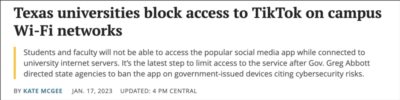 密西西比州、阿肯色州、得克萨斯州等地的学生已经数周都无法通过学校的网络访问TikTok。