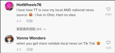 在事发第二天通过TikTok了解到俄亥俄火车脱轨事件的一个TikTok网友说:“现在TikTok成了我获取本地和全国新闻的来源了,我就住在俄亥俄,但在此之前对此事毫不知情。”