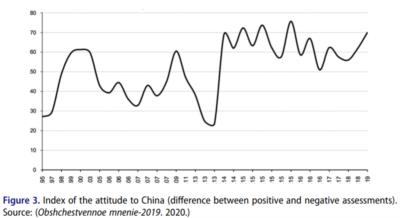 总的来说,国家电视台仍然是俄罗斯民众了解外国世界的主要信息来源,当然对公民的观点有很大的影响。近年来,与中国加强合作的政策得到了广泛支持,公众对中国的看法得到了显著改善。总体上,“高层地缘政治话语”与“低层地缘政治话语”的对应关系得到了改善。俄罗斯民众赞赏中国的经济成就,视中国为友好国家和战略伙伴。近年来,公众舆论对这个中国的积极态度总体上有所增加。与此同时,从苏联时代和更遥远的时期继承下来的民族刻板印象和对中国的警惕仍然存在于集体的历史记忆中。在许多俄罗斯公民的认知中,他们与中国人之间存在着巨大的文化距离。基层层面缺乏信任是阻碍俄中友好关系的一个重要因素。