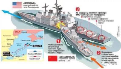 当时,美国海军约克城号巡洋舰和卡隆号驱逐舰,闯入黑海宣示所谓的自由航行权,这遭到苏联海军的强烈抗议。在警告无果后,两艘苏联战舰,向美舰发出“我奉命撞击你舰”的讯号,直接冲向了美舰……