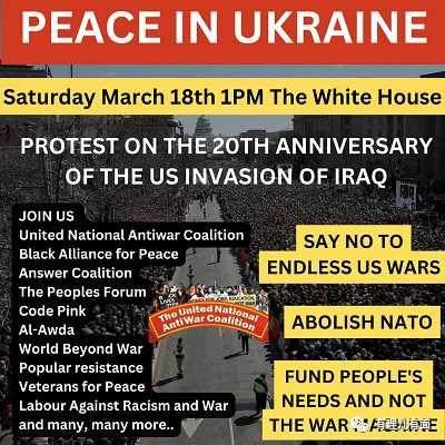 据悉,此次游行由美200多家非政府组织共同发起,是多年来规模最大的反战行动,发起游行的主要原因是:随着美国在乌克兰的代理人战争持续,几个主要的核大国被迫卷入不断升级的战争中,让世界特别是美国民众深感不安。