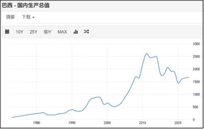 巴西的GDP在2011年达到峰值后,过去10年,巴西的GDP基本都在下降通道里。
