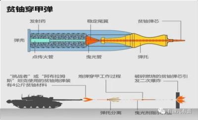 首先,贫铀弹在击穿目标时会释放出大量的铀粉末和气态铀化合物,它在衰变过程中会释放出α射线(氦核)和β射线(电子)。