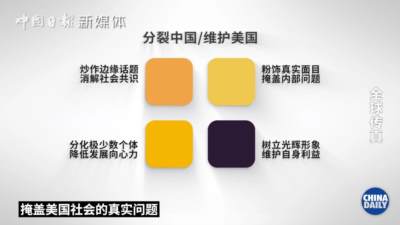 由反华媒体不断炒作边缘话题,美国政府的最终目的是利用被曲解的价值观,将中国打造成一个“专制”、“独断”的威权国家形象。所谓“威权”形象,与美国为自己包装的所谓“民主”形象相对立。