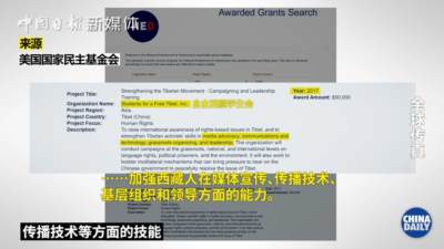 早在2017年,美国国家民主基金会就开始资助所谓“自由西藏学生会”,提供资金加强他们在媒体宣传、传播技术等方面的技能。同时,美国国家民主基金会长期资助所谓“西藏之声基金会”开设所谓“独立短波藏语电台”,传播有关于“藏独”的信息内容。