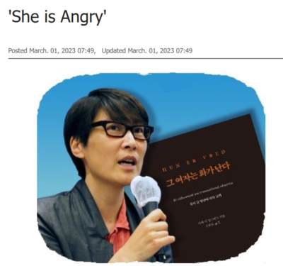 3月初,韩国的《东亚日报》介绍了一位丹麦诗人玛雅·李·朗瓦德的书——《她很愤怒》,在这本书里,“她很愤怒”这句话出现了超过1500次。