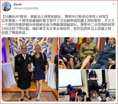 另外,美国的四星上将雷切尔·莱文也是一位变性人,2011年之前他是一位男性。他为什么要变性?因为变性之后他加入了阉党,在仕途上如同坐上了火箭,扶摇直上。