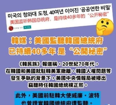 这五手真干脆,不但是否认了,谁再说美国监听韩国总统,那就变成了什么势力和造谣了。