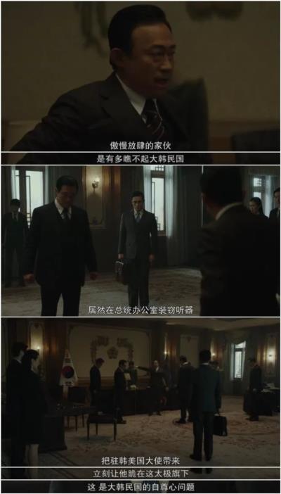 这个电影是在搞艺术创作吗?让美国大使下跪当然是艺术创作,老朴胆子再大,和美国关系再差也不敢开这种玩笑。但美国窃听青瓦台并非空穴来风。