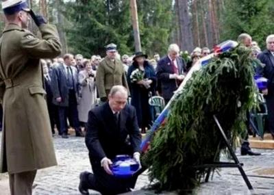 冷战结束之后,俄罗斯和波兰试图和解。2010年4月7日,访问波兰的普京手握鲜花,神情凝重,当着全世界的面,在卡廷惨案的纪念碑前单膝下跪,告慰亡者的在天之灵。