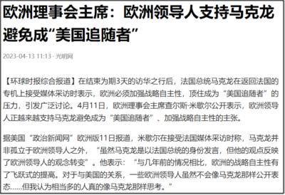 比如欧洲理事会主席,就在接受采访时表示,马克龙并非孤立于欧洲领导人之外,欧洲领导人正越来越支持马克龙避免成为“美国追随者”、加强战略自主性的主张。
