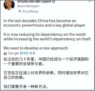 我们严格来说,顶多只是正在减少对美国的依赖,结果到冯德莱恩的嘴里就变成减少对世界的依赖。