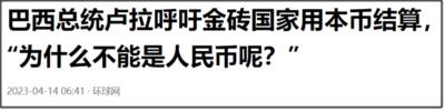 后面,巴西总统卢拉在访华的时候,就直接说“我每到晚上都会想一个问题,为什么所有国家都要用美元来结算呢?为什么不能是人民币或其他货币成为国际结算货币呢?”“为什么不能用自己的货币来结算呢?”