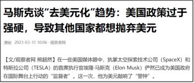 就连马斯克也下场参与了“去美元化”的讨论。