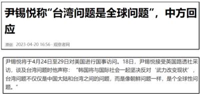 而且尹锡悦的逻辑本身就有很大问题,他居然把台湾问题和朝鲜半岛问题等同,称之为是全球问题。