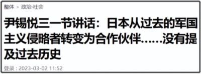 这是因为尹锡悦在三一节讲话里,悍然称,“日本从过去的军国主义侵略者转变为合作伙伴”。