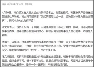 但尹锡悦反倒错误的把台湾问题和朝鲜问题拿来一起说,这本身就是性质很严重的“外交无礼”行为。