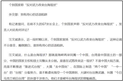而台湾问题,完全是中国内政,是我们内部问题,是完全不容外部势力干涉和指手画脚。