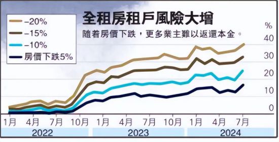 如上图所示,假如房价下跌超过20%,那么有40%的全租房的房东会资金链断裂。