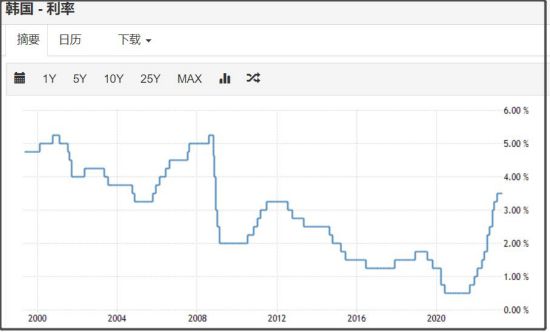 但去年韩国的利率是从0.5%,上升到现在3.5%。
