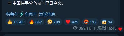 官方发言还比较克制,乌克兰民众的反应堪称热烈。乌克兰最大的新闻频道发布了相关消息,瞬间点赞近五千。