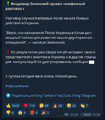 等搞完乌语机翻再回头看,点赞已经破万。乌克兰人非常重视这次通话,没有谁不希望和平。