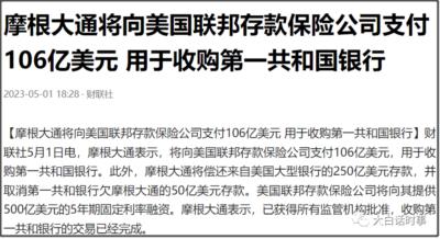 但还有不少人,真信了摩根大通这套说辞,我看网络上就有不少人也在说,摩根大通这次收购并没有赚多少。