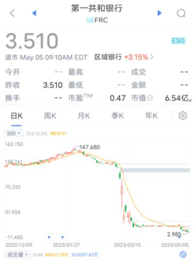 目前,第一共和银行的股价由曾经的147美元跌到3.5美元,已经退市了。