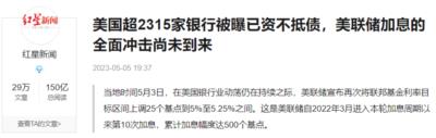 美联储在一年的时间内连续加息10次,基准利率由0提高到5%,加息的速度太快,幅度太大。